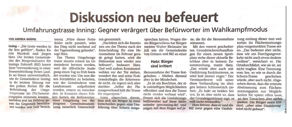 für die BIZ (Bürgerinitiative für Innings Zukunft)