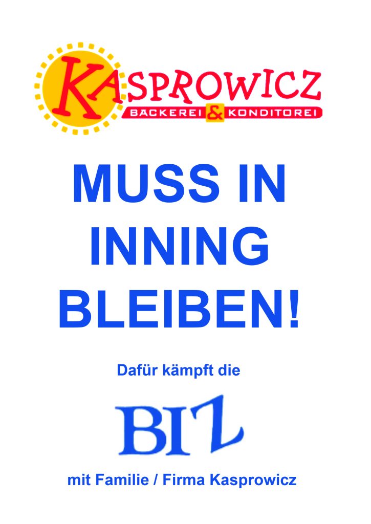 Veröffentlicht am Februar 27, 2026Februar 27, 2026 von Bernhard WagnerKasprowicz muss in Inning bleiben! BIZ unterstützt den Verbleib der Bäckerei Kasprowicz in Inning.